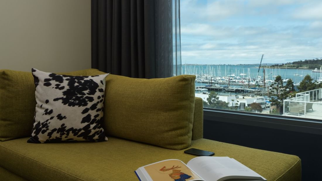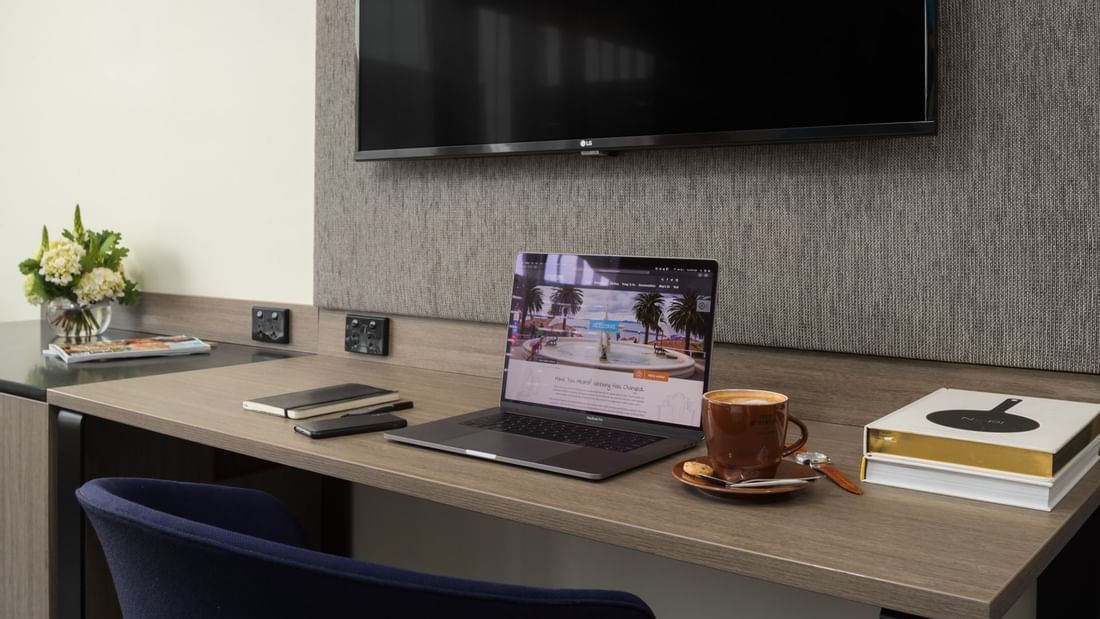 Enjoy our modern Standard Room, offering a luxurious King bed, chaise lounge, work desk, 49" TV with FOXTEL and Chromecast and complimentary WIFI. This room features a balcony and is situated on either side of the hotel. Ideal for up to two guests.